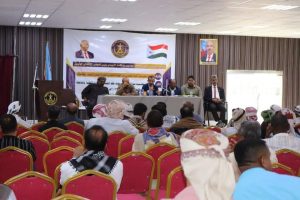 وطالب القائم بأعمال رئيس الهيئة، المجتمعين بالارتقاء إلى مستوى المسؤولية والتحديات التي يواجهها، أبناء وادي حضرموت، مع القوات اليمنية، التي ترفض تنفيذ اتفاق ومشاورات الرياض.. مؤكدا على أهمية أن يخرج بقرارات تتفاعل مع مايجري من أحداث، وتلامس تطلعات الشارع في حضرموت.