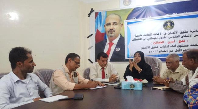 حضر اللقاء التقيمي إدارات حقوقية “الحوطة وتبن” وعدد من مدراء الإدارات في الهيئة المحلية للمجلس الإنتقالي الجنوبي….