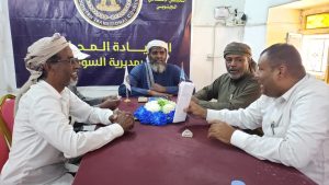وفي بداية اللقاء رحب رئيس المجلس بالمديرية الاخ راضي باحميش باللجنة التحضرية لنادي السوم شاكر لهم هذا الزيارة، مشيراً الى ان المجلس الانتقالي يهتم بشريحة الشباب ويسعى جاهدا الى تلبية احتياجاتهم الرياضية ودعمهم ماديا معنويا، محذرا شباب المديرية من العادات الدخيلة كالقات والشبو وغيرها من المخدرات.