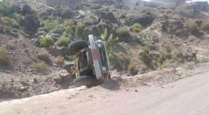 إلى جانب هذه التشققات تأتي مشكلة بروز اخطاء المقاولات الممولة من صندوق صيانة الطرق في إعادة تأهيل الخط والعباره الواقعة على طريق عقبة مُريب وعدم عمل حواجز اسمنتية جانبية وسفلتة الطريق وهو ما تسبب اليوم في حادث انقلاب سياراة وعرقلة سير السيارات خصوصا في أوقات الليل .
