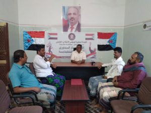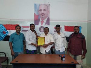 أحمد بن سحاق مدير الإدارة التنظيمية ومحمد الخلاقي مدير ادارة الشهداء والجرحى، والإعلامي أديب باجسير.
