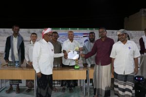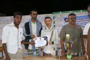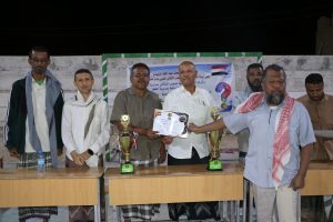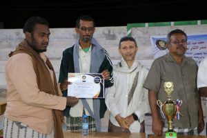 في ختام المسابقة قام الاخوة/ محمد الحداد رئيس الهيئة التنفيذية للقيادة المحلية للمجلس الانتقالي بمديرية القطن والاستاذ / جلال باسواد ممثل مكتب الشباب والرياضة والاستاذ/محمد قندوس الأمين العام لنادي شباب القطن والاستاذ/حسين الهدار المسؤل الثقافي لنادي شباب القطن والاستاذ/صالح بن حريز عضو الهيئة الادارية لنادي التعاون بالعقاد والاخ/ محمد بيزار مدير الإدارة الثقافية بالهيئة التنفيذية لانتقالي القطن’ بتسليم كأس للبطل وكأس للوصيف’ وتوزيع شهادات تقديرية للفرق المشاركة.