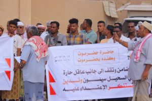 وطالب المشاركين في بيان الوقفة الجهات المسؤولة في السلطة والقضاء بإتخاذ الإجراءات القانونية والعقوبات الرادعة لمثل هذه الحوادث الغير مقبولة لمجتمعنا في حضرموت عامة وسيئون خاصة لكونها مدينة السلام .
