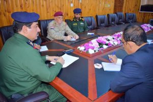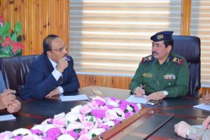 ووقف اللقاء الذي حضره وكيل المحافظة لشؤون مديريات الوادي والصحراء عامر العامري، وقائد المنطقة العسكرية الأولى اللواء الركن صالح طيمس، ومدير عام الأمن والشرطة بالوادي والصحراء العميد ركن عبدالله بن حبيش الصيعري، أمام الوضع الأمني بالوادي والصحراء والحادثة الأخيرة التي شهدتها مدينة سيئون بدخول عدد من المسلحين من خارج المحافظة بالسلاح والاقتتال داخل المدينة.