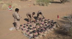 أعلنت فرق مشروع مسام لنزع الألغام تفكيك منذ بداية شهر أبريل الجاري، نحو 2223 لغمًا وقذيفة غير منفجرة وعبوة ناسفة زرعتها ميليشيات الحوثي في عدة محافظات.