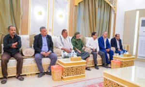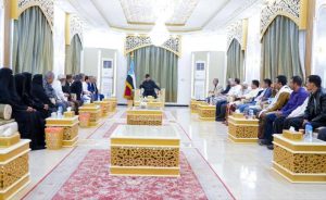 واستمع الرئيس القائد بعدها من الحاضرين إلى جملة من الآراء والمقترحات فيما يخص المشكلات التي تعاني منها محافظة أبين، وسُبل حلها، شاكرين حرصه واهتمامه الخاص بإعادة الأمن الاستقرار للمحافظة، ومبدين استعدادهم لتنفيذ أي مهام من شأنها أن تُسهم في حل المشكلات التي تعاني منها المحافظة وترسيخ الأمن والاستقرار فيها.