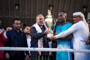 وفي ختام المباراة التي حسمها تضامن حضرموت بركلات الترجيح، سلّم الرئيس الزُبيدي كأس الذكرى الـ29 لفك الارتباط، لقائد فريق التضامن، وكأس الوصيف لقائد نادي وحدة عدن.