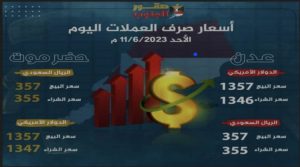 اسعار الصرف اليوم الأحد عدن الدولار شراء: 1346 بيع: 1357