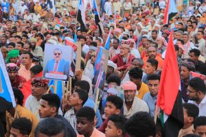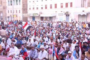 وفي حاضرة حضرموت، مدينة المكلا، اكتظت ساحة الحرية بحي الشهيد خالد، بعشرات الآلاف من المواطنين، مرددين الهتافات المؤيدة للمجلس الانتقالي الجنوبي، والشعارات الرافضة