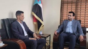 استقبل الأستاذ سالم ثابت العولقي رئيس الهيئة الوطنية للإعلام الجنوبي، اليوم الأحد، في مكتبه بمقر الهيئة بالعاصمة عدن الإعلامي أصيل السقلدي مدير المركز الاعلامي لقوات العمالقة الجنوبية.