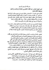 ★ يؤكد اللقاء على حق أبناء حضرموت في إقامة إقليمهم الذاتي ضمن الدولة الجنوبية الفيدرالية، الذي تدار جميع موارده من قبل أبنائه، ويناشدون دول التحالف العربي لمساعدة أبناء المحافظة، وتحقيق مطالبهم، وتمكين قوات النخبة من السيطرة على كامل تراب حضرموت.