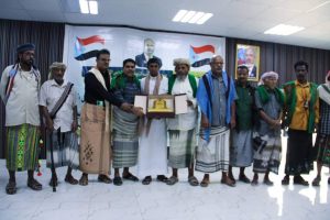 وعبر باشقار عن شكر قبائل نوّح للمجلس الانتقالي على تقديمه لمنحة دراسية لابنهم المتفوق والحائز على المركز الأول في الثانوية العامة رائد أحمد العكبري..