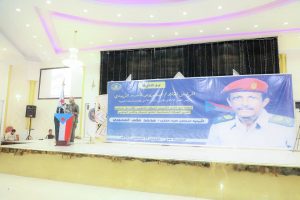 وفي مستهل الحفل الذي افتتح بآيات من القرآن الكريم، أعقبها النشيد الوطني الجنوبي، ثم الوقوف دقيقة حداد لقراءة الفاتحة على روح الفقيد، ألقى الأستاذ فضل الجعدي، عضو هيئة رئاسة المجلس الانتقالي، الأمين العام للأمانة العامة لهيئة الرئاسة، رئيس اللجنة التحضيرية للتأبين، كلمة نقل فيها تحايا الرئيس الزُبيدي لكافة الحضور، وعظيم تعازيه ومواساته لأسرة وذوي الفقيد.