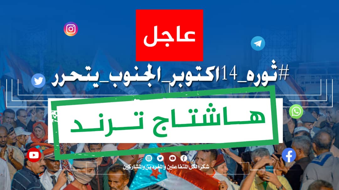 جاء ذلك خلال اطلاق الناشطون والسياسيون الجنوبيون عصر يوم الخميس 13 أكتوبر / تشرين الأول 2022م، هاشتاج #ثوره14اكتوبرالجنوب_يتحرر عبر أشهر مواقع التواصل الاجتماعي (تويتر).