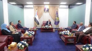 واستعرض اللقاء مجمل أنشطة الوزارة، وماهية الصعوبات التي تواجه سير عملها في ظل الأوضاع التي تشهدها البلاد من تدهور وفساد في أغلب مؤسساتها، متطرقًا لضرورة تفعيل دور جهاز الرقابة والمحاسبة وأهمية تنفيذ اللوائح والقوانين المُنظمة للعمل.