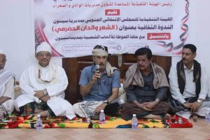 أقامت الهيئة التنفيذية للقيادة المحلية للمجلس الانتقالي الجنوبي بمديرية سيئون بالتنسيق مع حافة الحوطة ندوة ثقافية بعنوان ” الشعر والدان الحضرمي” بحضور عدد من أعضاء الجميعة الوطنية والقيادات من الهيئة التنفيذية المساعدة للمجلس الانتقالي الجنوبي ومديرية سيئون.