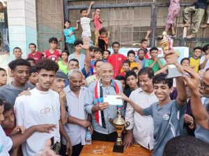 وسلم الدكتور علي عوض الصلاحي رئيس تنفيذية انتقالي المعلا كأس الدوري لكابتن فريق الشيخ اسحاق فيما تحصل فريق معيطة على كأس الوصيف.