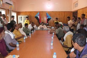 وعقد المحمدي اجتماعا موسعا مع قيادة السلطة المحلية والشخصيات الاجتماعية بالمديرية، حضره وكيل المحافظة لقطاع الشباب والرياضة فهمي باضاوي، والمدير العام للمديرية عبدالباسط عبدالله باحميد.