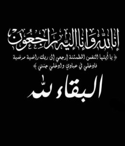 (وَبَشِّرِ الصَّابِرِينَ الَّذِينَ إِذَا أَصَابَتْهُمْ مُصِيبَةٌ قَالُوا إِنَّا لِلَّهِ وَإِنَّا إِلَيْهِ رَاجِعُونَ ) صدق اللّه العظيم