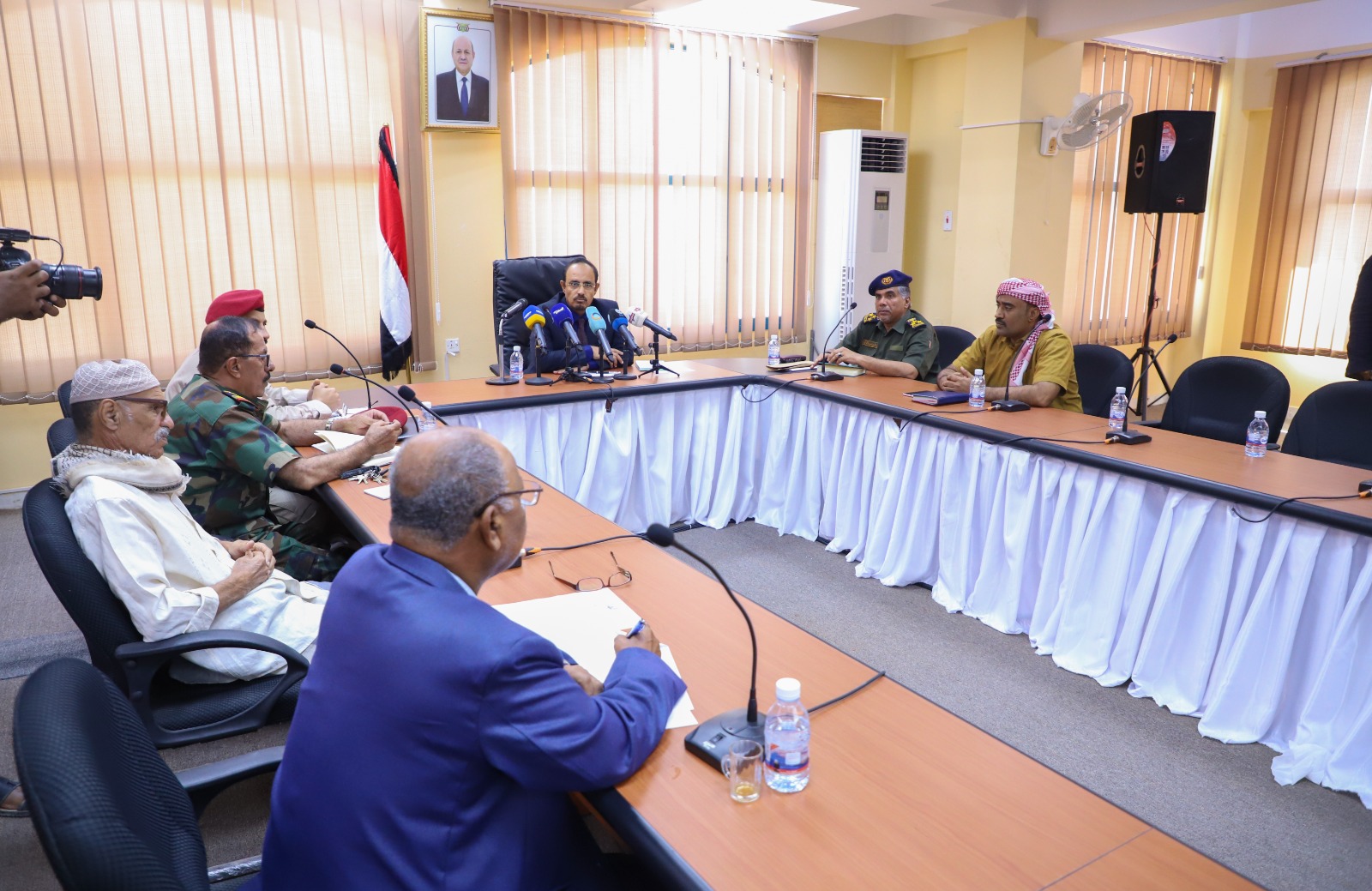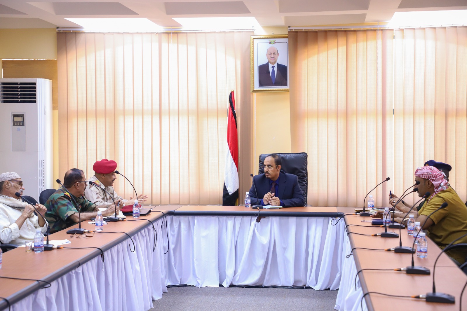 ونقل المحافظ في مستهل اللقاء، تحيات القيادة السياسية ممثلة بفخامة الرئيس الدكتور رشاد العليمي، وأعضاء مجلس القيادة الرئاسي، الذين دائمًا ما يشيدون بحضرموت ووعي أبنائها واستقرارها.