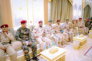 واستمع الرئيس القائد في ختام اللقاء من قائد القوات البرية إلى شرح الجهود المبذولة في جوانب تأهيل وتدريب ضباط التوجيه المعنوي، وجملة المهام المنفذة في جانب التوجيه في مختلف الوحدات، كما استمع من ضباط التوجيه إلى شرح مختصر للمهام التي ينفذونها في الميدان.