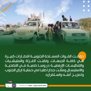 * نُثمن جهود القوات المُسلحة الجنوبية (العسكرية والأمنية) في كافة محافظات الجنوب خصوصًا خلال عيد الفطر