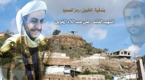 وفي آخر المعركة تقدم الأسد وهو يزئر الحرية ” الخويل” إلى جانب سور موقع العرشي وقام برمي عدد من القنابل اليدويه ويمشط بالسلاحه الكلاكنشوف حيث كانت جثث الغزاة متناثرة كالفراش المبثوث على إمتداد منحدر الموقع ، حينها أصيب في طلقتين بصدرة ليرمي اخر قنبلة يدوية كانت بحوزته وتراجع إلى الخلف وبصوت منخفض يقول لمقاتلية الاشاوس لقد اصبتُ ،حينها تم إسعافه إلى مستشفى النصر الواقع في محافظة الضالع وعند وصوله للمستشفى فارق الحياة شهيداً كانت السماء ملبدًة بالغيوم في منظر يوحي بإن السماء تبكية ، ذاع خبر إستشهاد الخويل بين صفوف المقاومين توافد المقاتلين من كل حدبً وصوب من الحبال والسهول والوديان والقرى إلى المحافظة ويكسوا ووجووهم الغضب ونار الإنتقام تشتعل في قلوبهم والحزن خيم على جميع أرجاء المعموره، حينها شنت المقاومة اول هجوم لها كأن في صباح يوم الإثنين تاريخ 2015/4/14م وتمكنت من إحراز تقدم بإتجاه مبنى السنترال والجوله الواقعه أمام الصيفي.