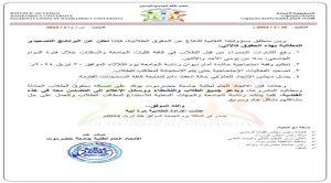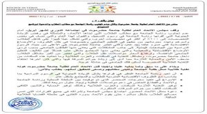 • أن تعيد رئاسة الجامعة النظر في قرارها بشأن الزيادة الجنونية في الرسوم الدراسية بما يتناسب مع الظروف الاقتصادية المتردية للطلاب والمجتمع بشكل عام.