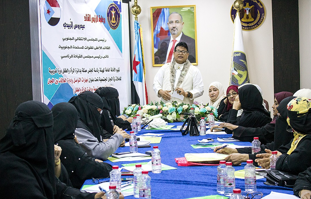 اختتمت دائرة المرأة والطفل في الأمانة العامة لهيئة رئاسة المجلس الانتقالي الجنوبي، اليوم الثلاثاء، دورة تدريبية للكادر النسائي في اللجان المجتمعية في مديريات العاصمة عدن، تحت عنوان “مهارات التواصل وإدارة العلاقات بين اللجان المجتمعية ودائرة المرأة والطفل”.