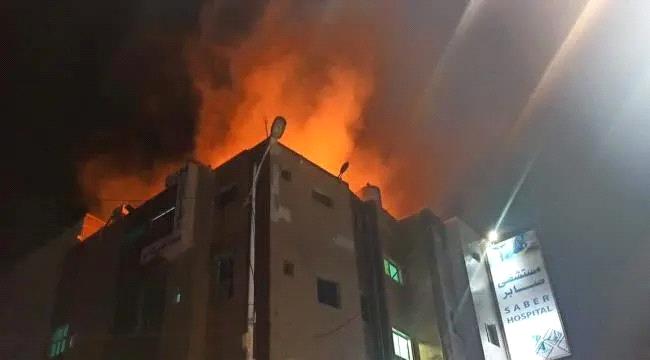 نشب حريق هائل مساء اليوم ، في مستشفى صابر بالعاصمة عدن.