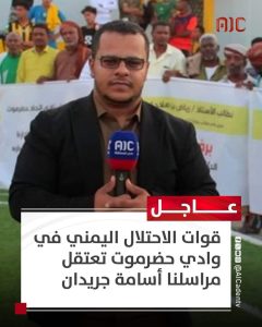 يذكر أن الاعلامي أسامة جريدان مراسل قناة عدن المستقلة بوادي حضرموت، قد تعرض صباح اليوم السبت، للاعتقال ومصادرة معدات التصوير وتفتيش سيارته من قبل جنود الاحتلال اليمني في المنطقة العسكرية الأولى بوادي حضرموت، دون أي مسوغ قانوني.