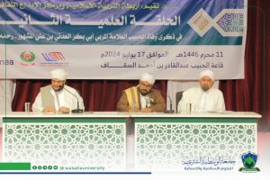 افتتحت صباح اليوم الأربعاء بقاعة الإمام عبدالقادر السقاف بمنطقة الحسيّسة بسيئون الحلقة العلمية الثانية في ذكرى وفاة المفكر الإسلامي الحبيب أبي بكر العدني بن علي المشهور، ضمن حولية الإمام المهاجر والملتقى العام السنوي الأول تحت شعار : *” من أجل تحقيق رؤية الحبيب أبي بكر العدني في خدمة الأمة ونهضتها لنعمل سويا باستراتيجية البناء الرأسي والتكوين المؤسسي”* تقيمها أربطة التربية الإسلامية ومركز الإبداع الثقافي للدراسات وخدمة التراث، برعاية وكيل محافظة حضرموت لشؤون مديريات الوادي والصحراء الأستاذ عامر سعيد العامري ورئيس مجلس مكتب الموجه العام لأربطة التربية الإسلامية الحبيب العلامة أبي بكر العدني بن علي المشهور ، وبحضور العلامة الحبيب عمر بن محمد بن سالم بن حفيظ عميد دار المصطفى بتريم للدراسات الإسلامية، ووكيل محافظة حضرموت المساعد لشؤون مديريات الوادي والصحراء الأستاذ عبدالهادي التميمي، ومدير عام مديرية سيئون الأستاذ محمد عوض العامري ، والأستاذ المساعد عبدالقادر الكاف مستشار وزير التعليم العالي والبحث العلمي، ووكيل وزارة الأوقاف والإرشاد عميد المعهد العالي للإرشاد الشيخ كمال باهرمز ، ورئيس مجلس مكتب الموجه العام السيد نزار بن أبي بكر المشهور، ورئيس مجلس أمناء جامعة الوسطية الشرعية السيد عبدالرقيب العطاس، ونواب رئيس الجامعة، والأمين العام، وعمداء الكليات ونخبة من العلماء والدعاة والشخصيات الاجتماعية وطلاب العلم الشريف.
