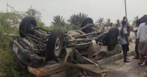 وقالت مصادر مطلعة أن طقم عسكري يتبع معسكر الكوارتز بالمنطقة العسكرية الثانية تعرض لإنقلاب في طريق ساحل شحير، ماأدى إلى إصابة 14 شخصاً أجريت لهم الإسعافات الأولية في مستشفى غيل باوزير ونقل الحالات الحرجة منهم إلى مشافي مدينة المكلا.