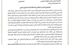 الموضوع: تقديم استقالتي كمحافظ للبنك المركزي اليمني