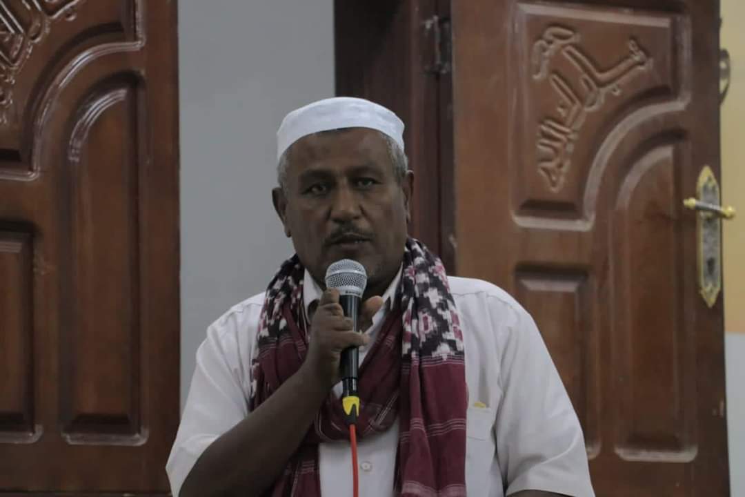 اسمحوا لي نيابة عن رئيس ونائب الهيئة التنفيذية المساعدة للمجلس الانتقالي الجنوبي لشؤون مديريات وادي وصحراء حضرموت إن أحدكم في هذا المقام المبارك وأن انقل تحيات القيادة السياسية للمجلس الانتقالي الجنوبي ممثلة بالرئيس القائد/عيدروس قاسم الزبيدي، رئيس المجلس الانتقالي الجنوبي وسيادة اللواء /أحمد سعيد بن بريك، رئيس الجمعية الوطنية الجنوبية، والعميد ركن/سعيد أحمد المحمدي، رئيس القيادة المحلية للمجلس الانتقالي الجنوبي بمحافظة حضرموت.