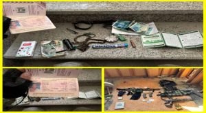 ويظهر في الصورة الأولى، مطوية “أذكار نبوية يومية” وكتيب “أذكار نافعة” ومسبحة وساعة يد وحلوى وشريط لاصق بالإضافة إلى مبلغ مالي يقدر بأنه 1600 شيكل إسرائيلي ما يقدر بـ 430 دولارا أمريكيا.