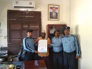 كرمت الإدارة العامة لشرطة السير بوادي وصحراء حضرموت صباح اليوم الأربعاء الضابط المثالي في إدارة شرطة السير بوادي وصحراء حضرموت الملازم أول / عبدالصمد عبدالله سعيد بن علي جابر رئيس قسم الترقيم والخطيب / عمر علي بن عون الصيعري