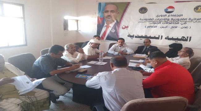 عقدت الدائرة القانونية بالأمانة العامة صباح اليوم في محافظة أبين اجتماعها الدوري للادارات القانونية واللجنة التحضيرية للاتحاد العام للحقوقيين الجنوبيين في محافظات الجنوب عدن لحج أبين الضالع . برئاسة الدكتور صالح المرفدي رئيس الدائرة القانونية بالأمانة العامة وبحضور الأستاذ محمد الشقي رئيس رئيس تنفيذية انتقالي أبين لمناقشة نشاط الادارات بالمحافظات وتقييم الأداء خلال الفترة الماضية .