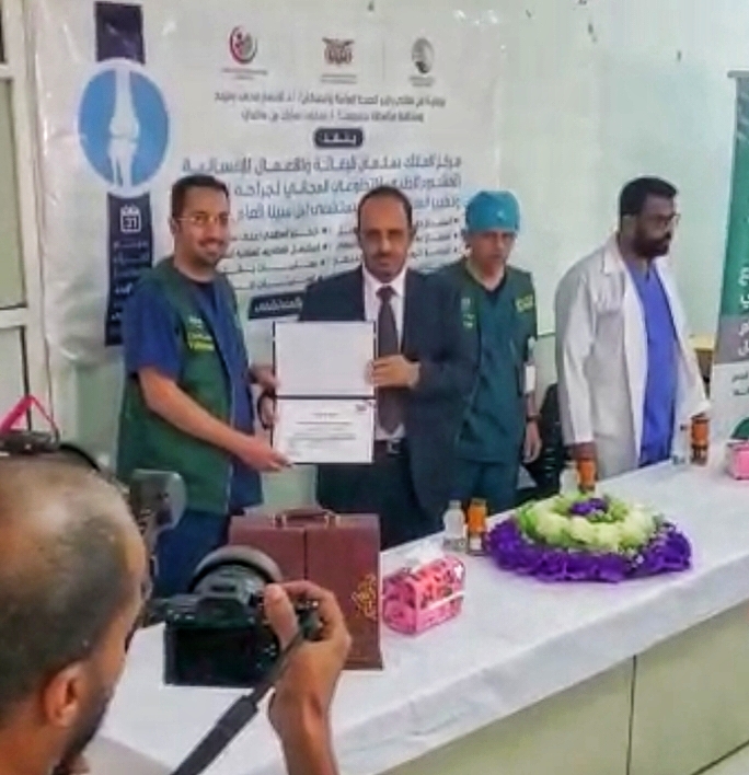 وشكر المحافظ تدخلات المملكة العربية السعودية الشقيقة ممثلة في ذراعها الانساني مركز الملك سلمان للإغاثة والأعمال الانسانية، في مختلف القطاعات ومنها القطاع الصحي، الذي يلامس شريحة المرضى الأكثر احتياجًا في ظل ظروف الحرب الحالية.
