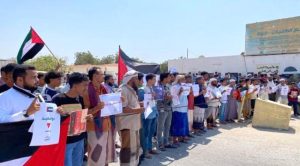 نظّم طلاب جامعة حضرموت، صباح اليوم، وقفة تضامنية حاشدة تنديدًا بجرائم الاحتلال الإسرائيلي في قطاع غزة، وذلك تزامنًا مع الحملة العالمية للإضراب المتضامن مع الشعب الفلسطيني.