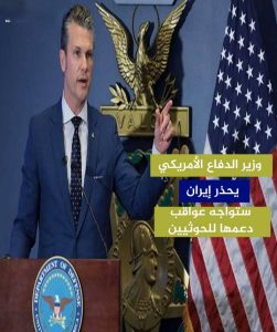 ونشر هيغسيث عبر حسابه على منصة “إكس” رسالةً جاء فيها: “رسالة إلى إيران: نرى دعمكم الفتٌاك للحوثيين. ونعرف تماماً ماتفعلونه”.