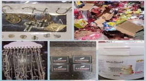 كما رفضت كمية من الاكسسوارات تحتوي على أشكال وتصاميم مخالفة للشريعة الإسلامية كالصلبان، و”ليبيلات” ملابس مدون عليها ذات منشأ خارجي ومعدة للاستخدام محليا، بمحاولة غش للمستهلك.