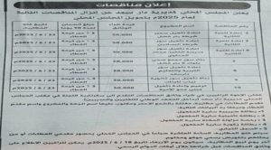 وأشار إلى أن آخر موعد لبيع الوثائق والمظاريف – البالغ رسوم كل مناقصة من “50” ألف ريال، و الضمان البنكي “3%” من قيمة العطاء المقدم من المقاول – هو يوم الأربعاء الموافق 18 / 6 / 2025م.