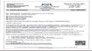 أصدر مكتب وزارة الخارجية بحضرموت مساء اليوم (وثيقة) صادرة عن حكومة ولاية بونتلاند الصومالية وزارة الثروة السمكية والموارد البحرية مكتب الوزير موجهة إلى: رئيس المحكمة الاستئناف – بَرْغَل، وقاضي منطقة رأس عسير وحاكم منطقة رأس عسير، ومحافظ مديرية برغال ، والمدير العام للوزارة ، ونائب الوزير ووزير الدولة في الوزارة بشأن مراجعة بشأن الحكم الصادر على السفينة “ميمون-1” (المرجع: M/DB/0191/2025)