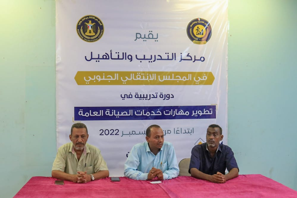 دشن مركز التدريب والتأهيل في المجلس الانتقالي الجنوبي، اليوم الأحد، دورة تدريبية في ” تطوير مهارات خدمات الصيانة العامة ” في المعهد المهني بمديرية المنصورة في العاصمة عدن.