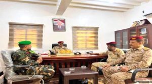بحث قائد محور الغيضة – قائد لواء الشرطة العسكرية بمحافظة المهرة، اللواء محسن علي ناصر مرصع، في مكتبه، مع قائد كتيبة الاحتياط التابعة لقيادة المحور، المقدم محمد محسن محمد، جهود تعزيز الجاهزية القتالية والرفع من كفاءة وقدرات منتسبي الكتيبة في إطار الجهود لمبذولة لرفع مستوى الأداء العسكري لوحدات المحور.