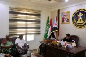 التقى رئيس الهيئة التنفيذية للقيادة المحلية للمجلس الانتقالي الجنوبي بمحافظة حضرموت، العميد الركن سعيد أحمد المحمدي، اليوم الأحد، بمقر الهيئة في مدينة المكلا، رئيس القيادة المحلية للمجلس الانتقالي الجنوبي بمديرية تريم، الشيخ عبدالله كرامة بن مشدود.