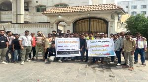 نظّم موظفو مطار عدن الدولي وقفة احتجاجية أمام مبنى الهيئة العامة للطيران المدني والأرصاد في محافظة عدن، للمطالبة بتحسين أوضاعهم الوظيفية والمعيشية.