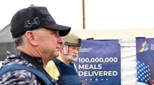 ونشر مايك هاكابي السفير الأمريكي لدى إسرائيل، الذي رافق ويتكوف إلى قطاع غزة اليوم، على إكس صورة تظهر سكان غزة الجائعين خلف أسلاك شائكة مع ملصق لمؤسسة غزة الإنسانية مع علم أمريكي كبير كتب عليه “تم تسليم 100 مليون وجبة”.