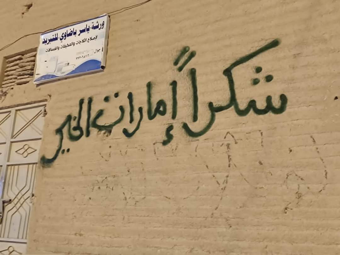 وقد كتب على الجدران شعارات وعبارات مثل :